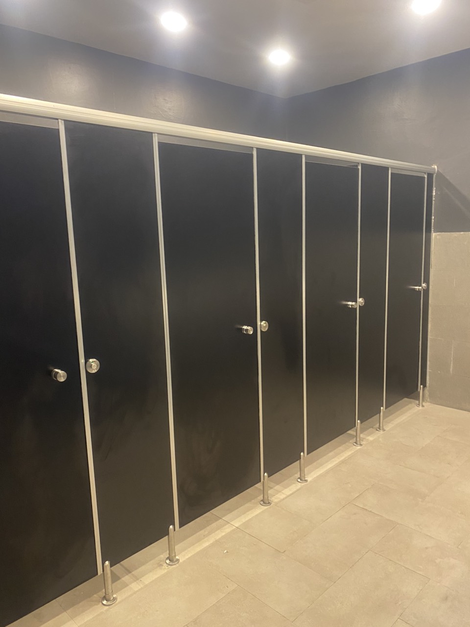 Vách ngăn toilet công cộng: Vách ngăn compact HPL được sử dụng nhiều trong các khu vệ sinh công cộng nhờ khả năng chống nước, chống ẩm và dễ vệ sinh. Điều này giúp duy trì môi trường sạch sẽ và an toàn cho người sử dụng.