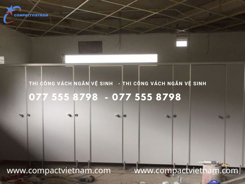 Vách ngăn toilet công cộng: Vách ngăn compact HPL được sử dụng nhiều trong các khu vệ sinh công cộng nhờ khả năng chống nước, chống ẩm và dễ vệ sinh. Điều này giúp duy trì môi trường sạch sẽ và an toàn cho người sử dụng.