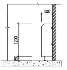 Mẫu vách ngăn bồn tiểu nam 01 có kích thước: rộng 400-450mm, cao 1200mm. Vách được lắp từ sàn lên, phụ kiện đi kèm gồm 1 chân cao 150mm, 4 ke và vít (tất cả là inox 304).