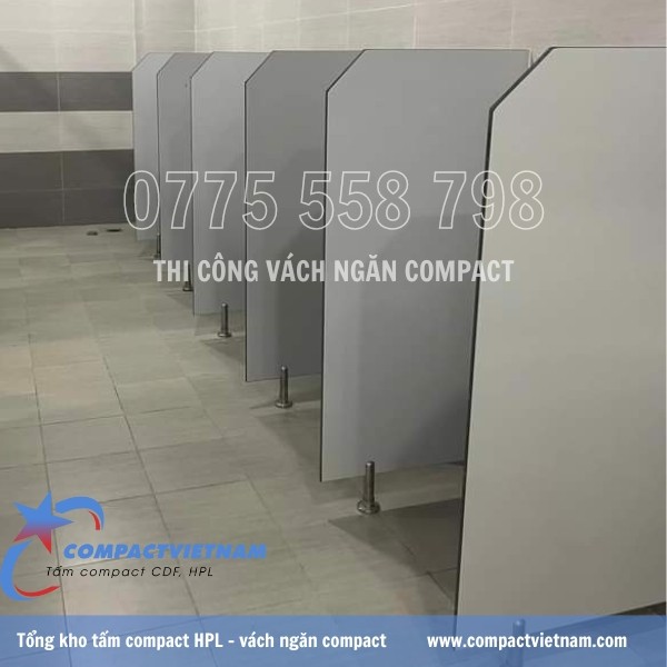 Vách ngăn tiểu nam bằng compact có khả năng chống thấm, chống cháy, chống mốc, chống vi khuẩn tốt, và có độ bền cao
