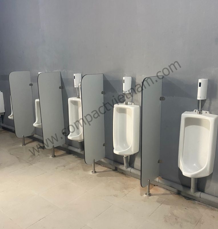 Vách ngăn tiểu nam bằng compact có khả năng chống thấm, chống cháy, chống mốc, chống vi khuẩn tốt, và có độ bền cao