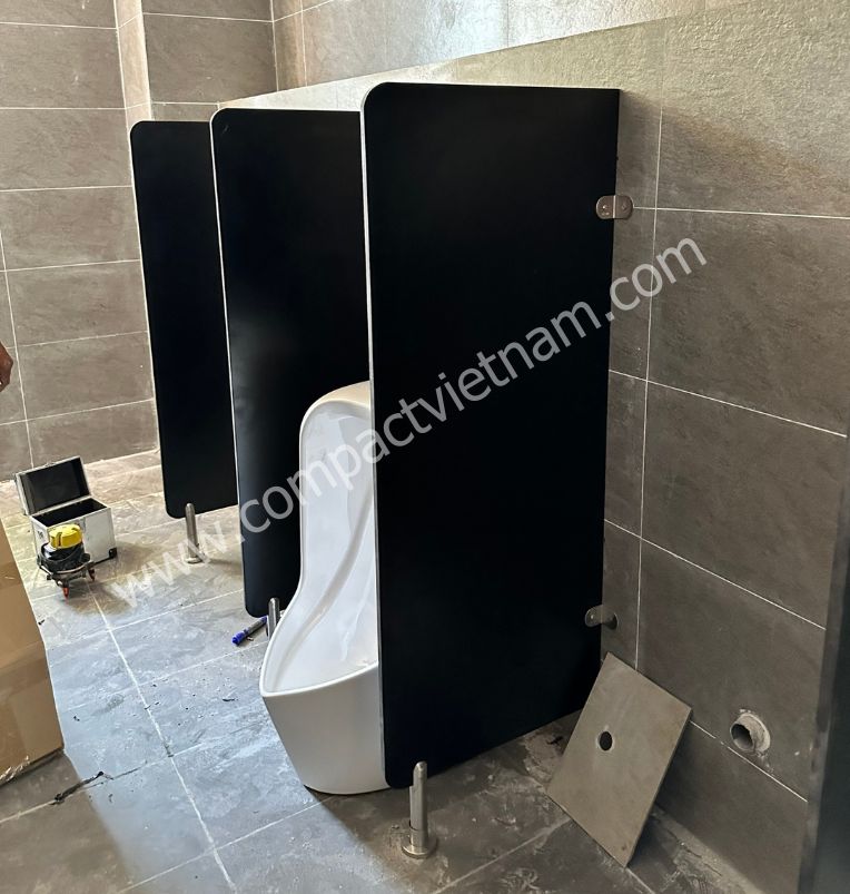 Vách ngăn tiểu nam bằng compact có khả năng chống thấm, chống cháy, chống mốc, chống vi khuẩn tốt, và có độ bền cao