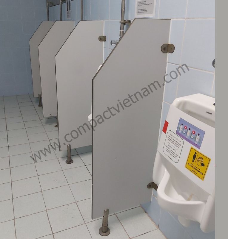 Vách ngăn tiểu nam bằng compact có khả năng chống thấm, chống cháy, chống mốc, chống vi khuẩn tốt, và có độ bền cao